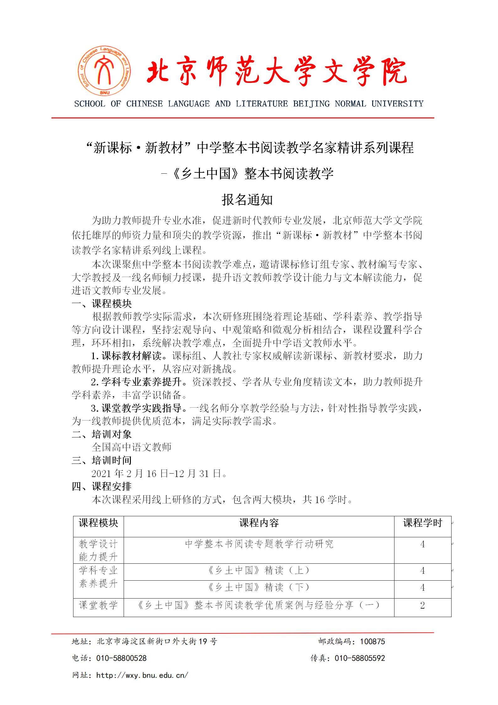 “新课标·新教材”中学整本书阅读教学名家精讲系列课程 -《乡土中国》整本书阅读教学 报名通知