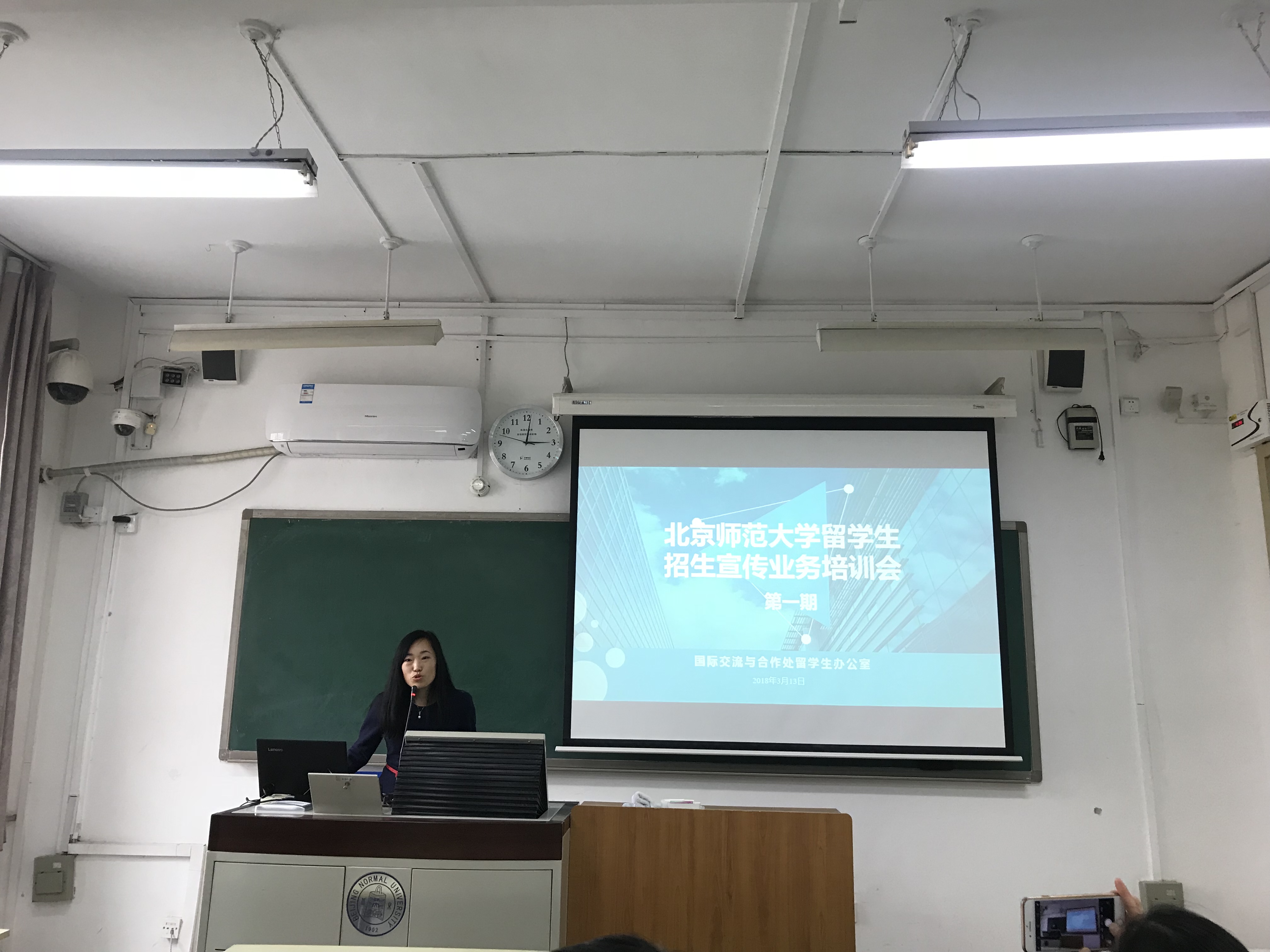 主管外事工作的代理副院长杨利慧教授,带领各所共8名老师参加了学校国际处组织的“北师大留学生招生宣传业务培训会”。培训会上,国际处艾忻副处长、韩瑞莲老师等人为我们详细介绍了国家层面和校级层面留学生招生现状,以及留学生招生的流程、留学生教育项目的申请、相关奖学金的概况等内容,并在会后和大家进行了积极的互动。参加培训的教师表示,这个培训非常有必要,也非常及时,让大家对留学生教育从宏观到微观,从政策到技术操作都有了一个全面而准确的了解,这对日后开展脱衣秀