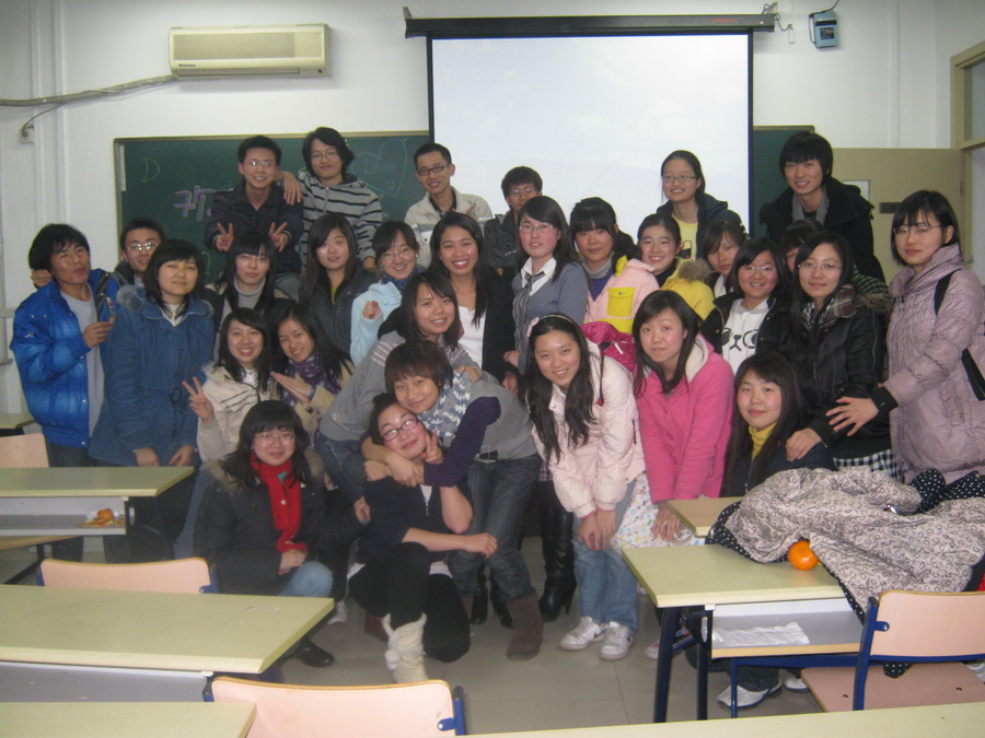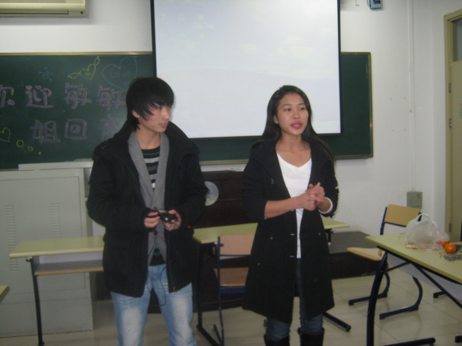 09级师范班2班为迎接其指导员蒋敏敏实习归来在教二115举办了一个欢迎会。 毋庸置疑,此次晚会的第一个环节就是敏敏师姐与同学们相见。师姐一亮相,使同学们感到了不同,虽然长相依旧,身材依然,但是感觉敏敏师姐瘦瘦的身板里蕴藏了更大的力量,骨子里融入了又一种风韵,也许是实习生活让她改变。她也说感觉我们又长大了一些,说我们稚嫩的脸上捎上了懂事的光芒。接下来同学们为表示对敏敏师姐归来的高兴,以宿舍为单位踊跃表演节目,歌声深情悠扬,抑或活泼欢快;小品有模仿,惟妙惟肖,抑或自己编排,用心良苦。 最后蒋敏敏师姐与我们分享了她的实习经验,有酸,有甜,但是品出了滋味就会有喜人的收获。透过敏敏师姐明亮的眼睛,温柔的声音,仿佛我们也有了一幅自己实习时的画卷。