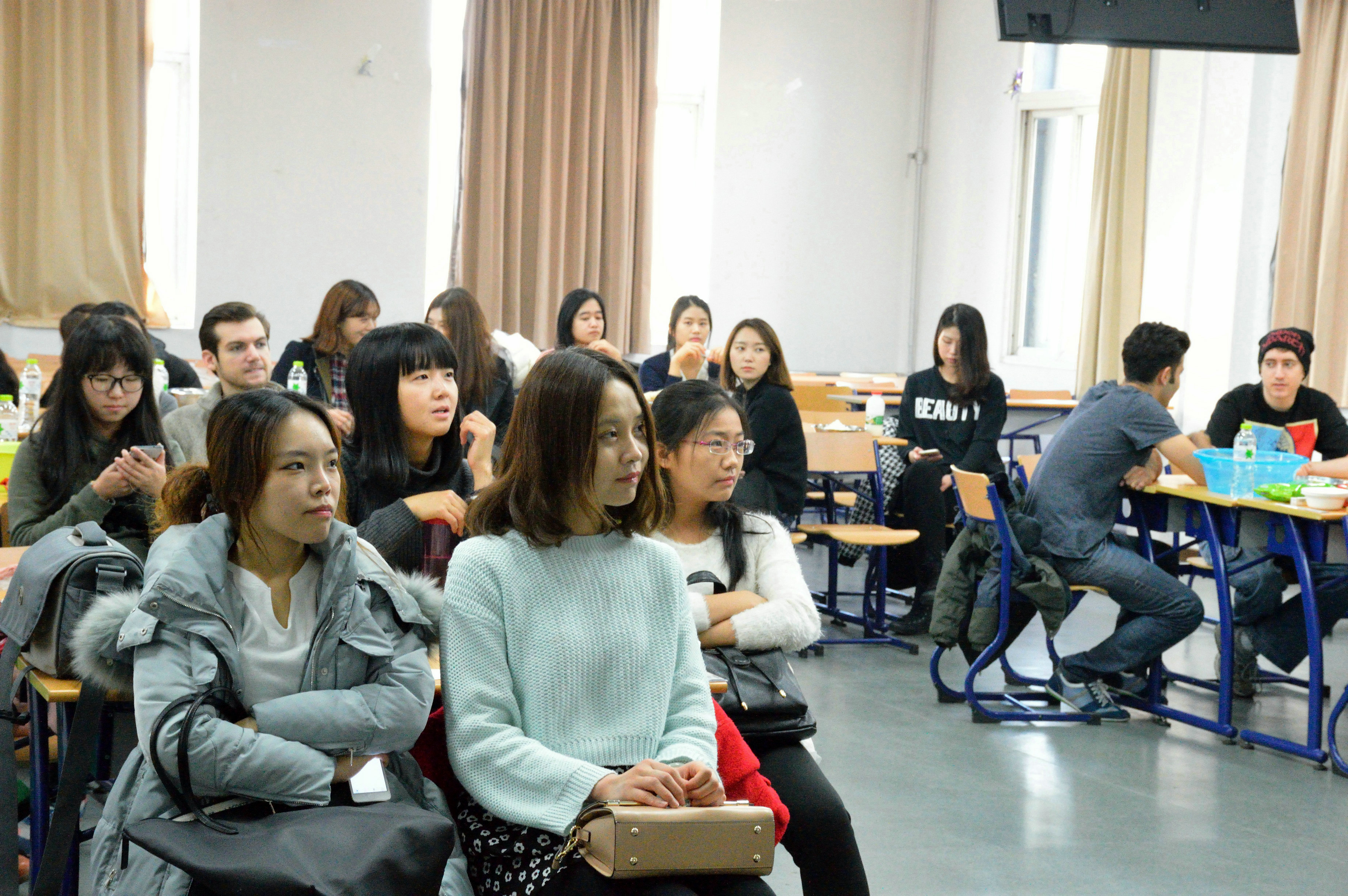 活动伊始,中外学生一起观看了《舌尖上的中国》中关于陕西挂面、饸烙面、重庆小面的精选片段。影片中的面条晶莹剔透,汤汁浓郁诱人,激发了大家对中国面文化的浓厚兴趣。