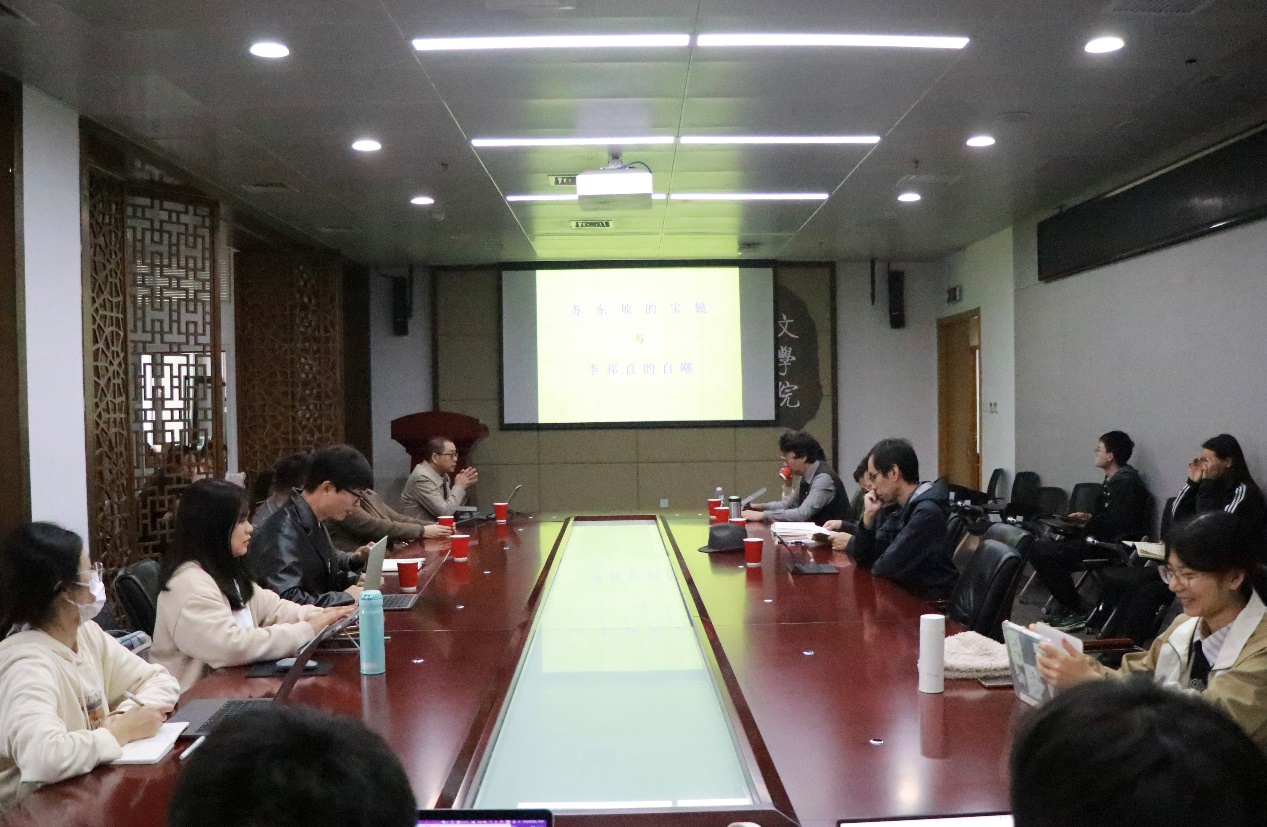 副教授颜子楠主持。 本次讲座的内容,部分源于俞国林老师对萧跃华先生《<苏东坡全集>编校商榷》一文的回应。俞老师分别从“苏东坡的宝镜”与“李邦直的自嘲”发微,以编辑的视角探寻文献的源头,讨论文本的流变与改动问题。 首先,针对苏轼所藏宝镜的镜上铭文,俞国林老师主要解释了镜上铭文的异文问题。俞老师分别列举了多种出土材料和传世文献进行比对,指出明杨慎《丹铅总录》引文、汉广陵国神兽博局镜等材料,均记为“丹阳”及“備之”。苏轼之才,不应不知“丹阳”,则其所藏铜镜或文字受损,从而导致释读错误。 此外,对于铭文“清如明”中“如”是否为“而”之通假,俞老师亦举多则材料说明两汉时期确实存在“如”“而”的通假现象。 俞老师又借介绍《东坡志林》的版本,引出了《东坡志林·李邦直言周瑜》的断句问题。即,《李邦直言周瑜》与《勃逊之》两条之间存在句读错误。俞老师对比明万历商濬编刻《稗海》初刻初印本、明万历二十三年赵开美校刊本、国家图书馆藏明嘉靖四十年前钞本等多个版本,考察其中“挖改”或“涂改”的痕迹,最后断定今日流传的“未知孰贤”下“与否”二字,实为后一条“与朱”之讹。这一考据路径解释了《李邦直言周瑜》和《与朱勃逊之》这两条文献的流传问题。基于此,俞老师指出古代典籍的文本形成是复杂的,文本具有流动性,是层累叠加的。 俞老师另根据史料考察了李邦直的生平,推测“李邦直的自嘲”或许出自胡铨《上张丞相书》内文字,而被误冠为李邦直语。而俞老师也提醒大家,虽然基于文本语境此推测可能成立,但由于“孤证不立”,仅作参考。 提问环节,颜子楠老师赞扬了俞老师严谨的考证及“发散性的思维”,并率先提出问题:“明人对宋代文献的改动是否严重?”俞老师指出,虽然有言“名人刻书而书亡”,但明人刻书总体还是有巨大的贡献。魏洪洲老师则向俞老师请教了明代版刻问题。另有同学很好奇老师如何使用“发散的思维”综合文史材料进行探究。俞老师鼓励同学们善用数据库,多多积累。 最后,杜桂萍老师总结道,俞老师以清晰的条理,用简单的主题涵盖了丰富复杂的内容,这种“以小见大”的方法论值得学习。本次讲座让到场师生收获颇丰,现场的同学们积极提问,反响热烈,期待京师中文大讲堂、木铎古典论坛为我们带来更多精彩活动。 (撰稿:张语诺,摄影:汤艺蕾)